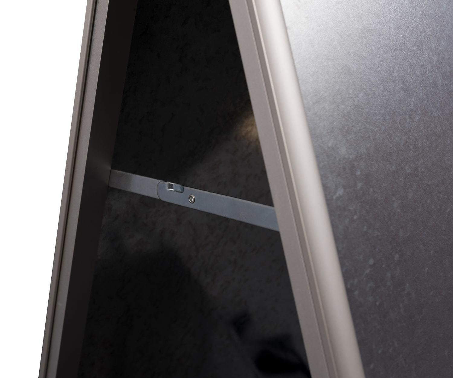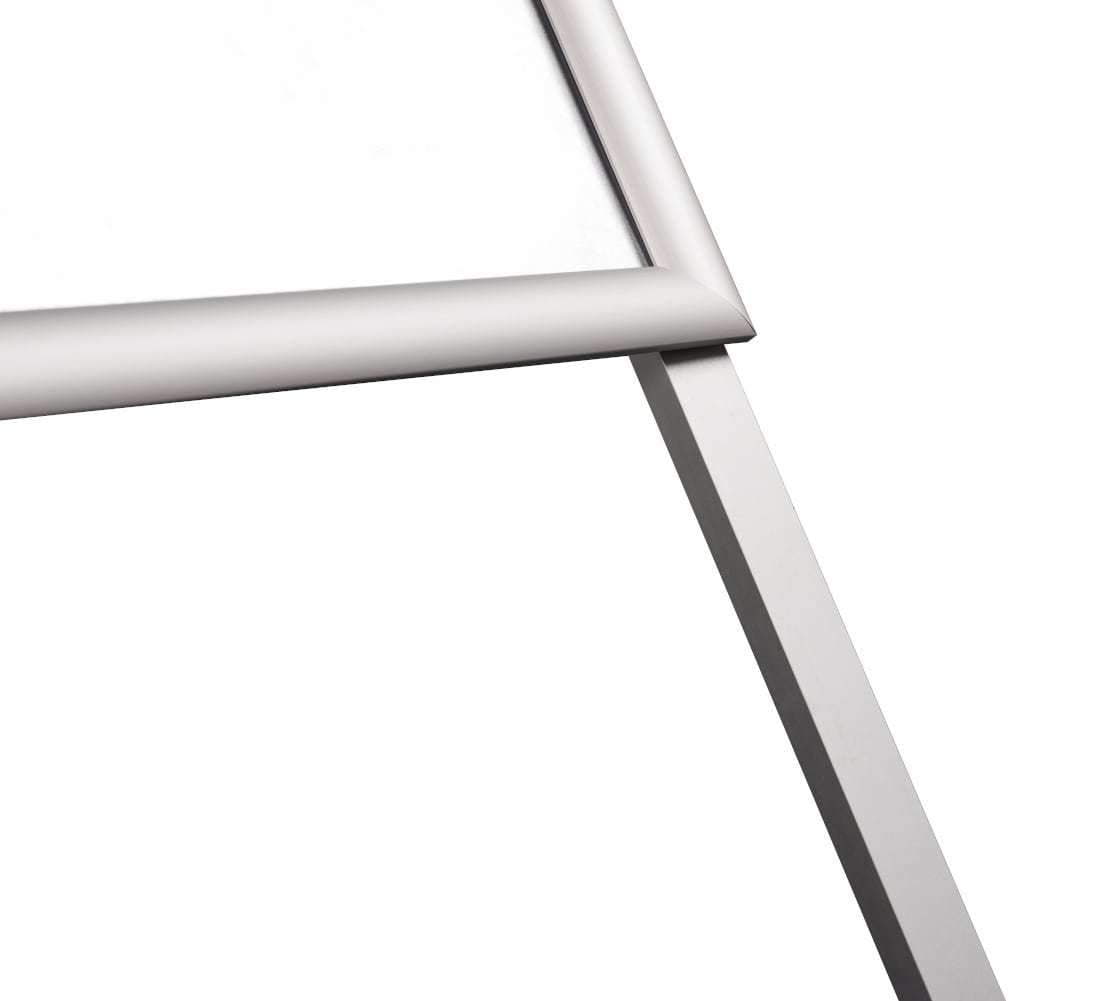 Erakordselt tugeva ja vastupidava süsteem reklaamatahvel, mis on valmistatud täielikult metallist ja tagakülg tsingitud terasplaadist. Tänu sellele saab märki kasutada õues, kuid väga tugeva tuule korral soovitame kasutada raskusega reklaamtahvlit. Plakatikate on UV-filtriga, mis kaitseb silti päikesevalguse ja tuhmuvate värvide eest ning plakatit on võimalik lihtsasti vaid mõne sekundiga vahetada. Kinnitusraam on valmistatud 32 mm anodeeritud alumiiniumprofiilist. A0 suurus: 841 x 1189mm Kahepoolset reklaamtahvlit on saadaval: A0 hõbedane, A2 must, A1 must ja A1 hõbedane