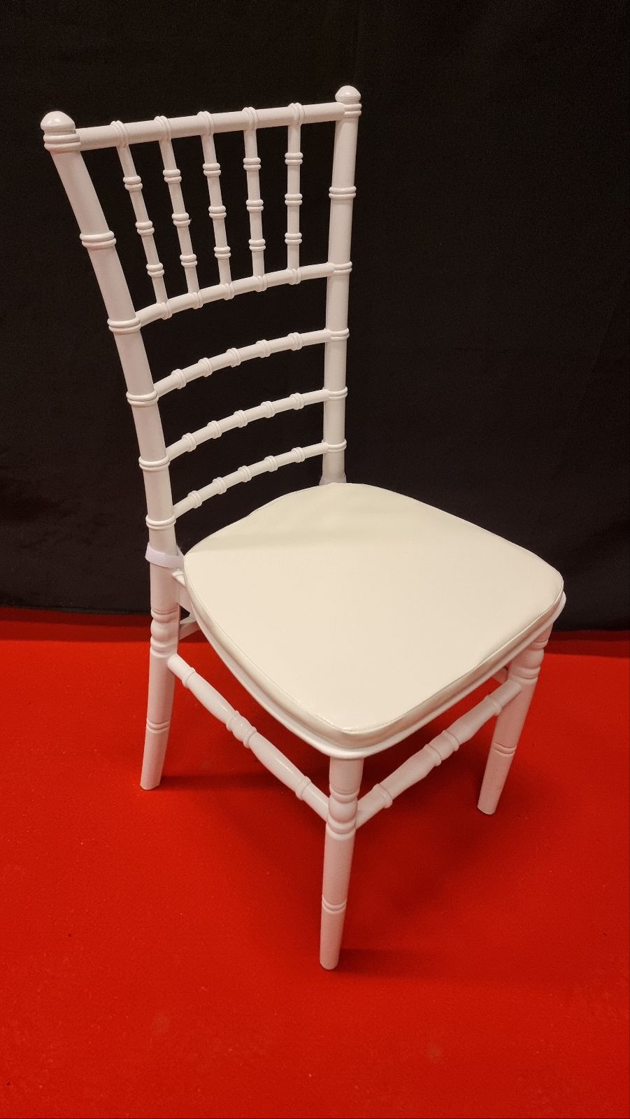 Chiavari toole on rendivalikus ka valge värvitooniga ja läbipaistva toolina.