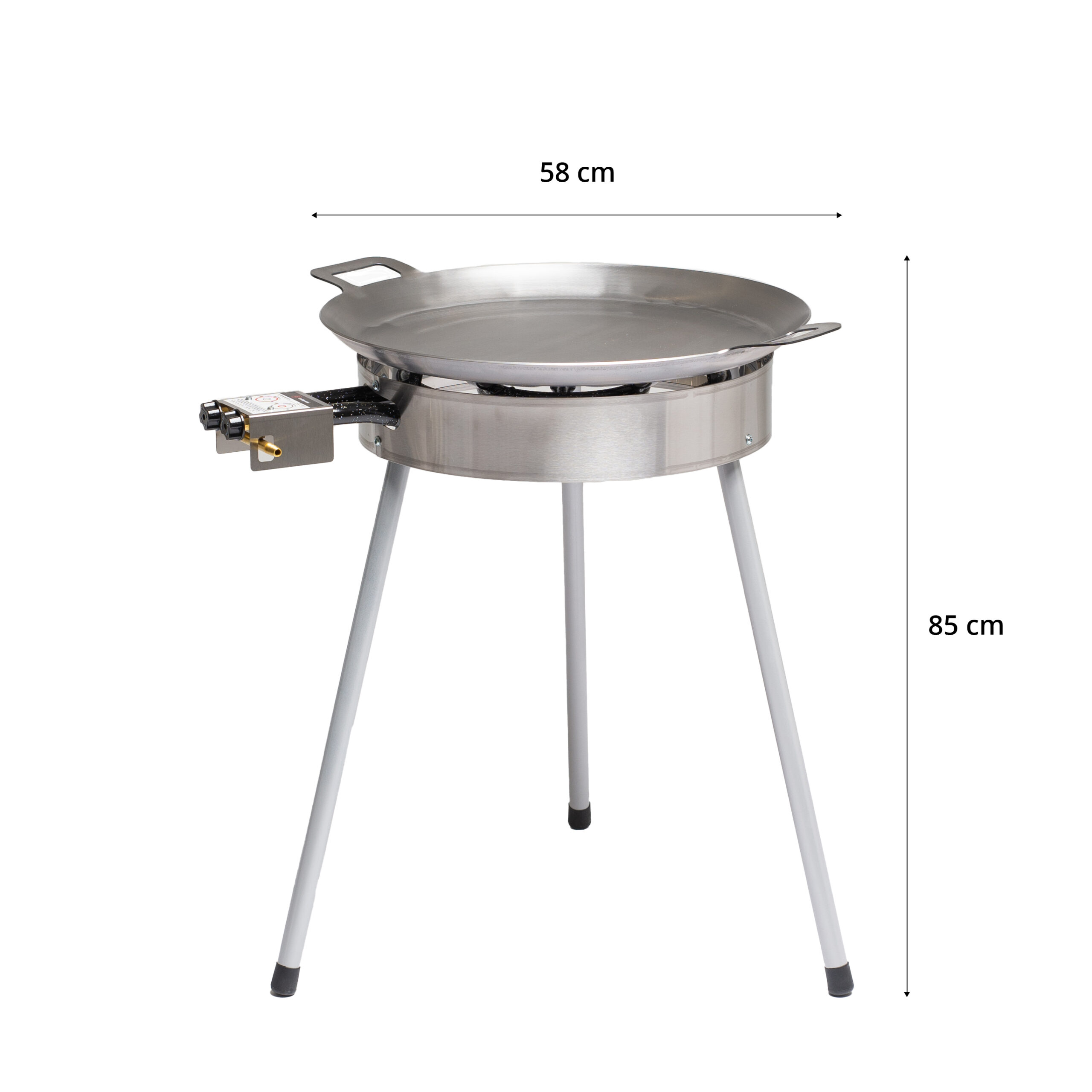 Basic-580 on üks populaarseim komplekt kodukasutajate seas. Tugev konstruktsioon, võimas gaasipõleti, kerge kaal ning kõrge äärega pann on hea kooslus. Võimaldab valmistada erinevaid roogasid nii küpsetamata kui eelküpsetatud toorainetest. Pannile mahub 12-20 portsjonit sõltuvalt sellest mida pannil valmistada. Panni lame põhi võimaldab ideaalselt ka toidu soojas hoidmist. Kuumenedes muutub panni põhi keskelt veidi nõgusaks. Panni 5 cm kõrgune äär võimaldab toitu ka hautada ja aurutada (kaane all), mis on suur eelis võrreldes madala äärega panniga