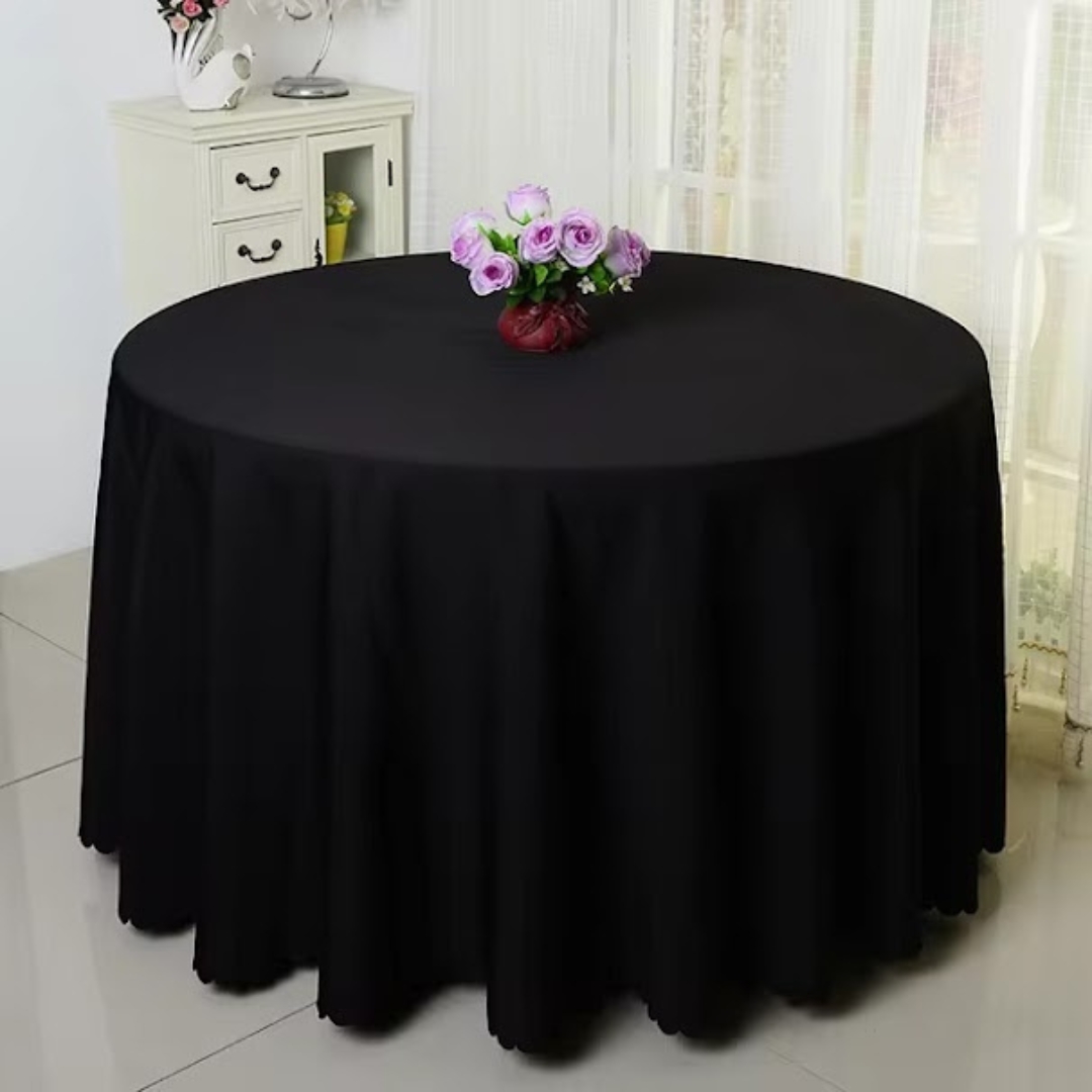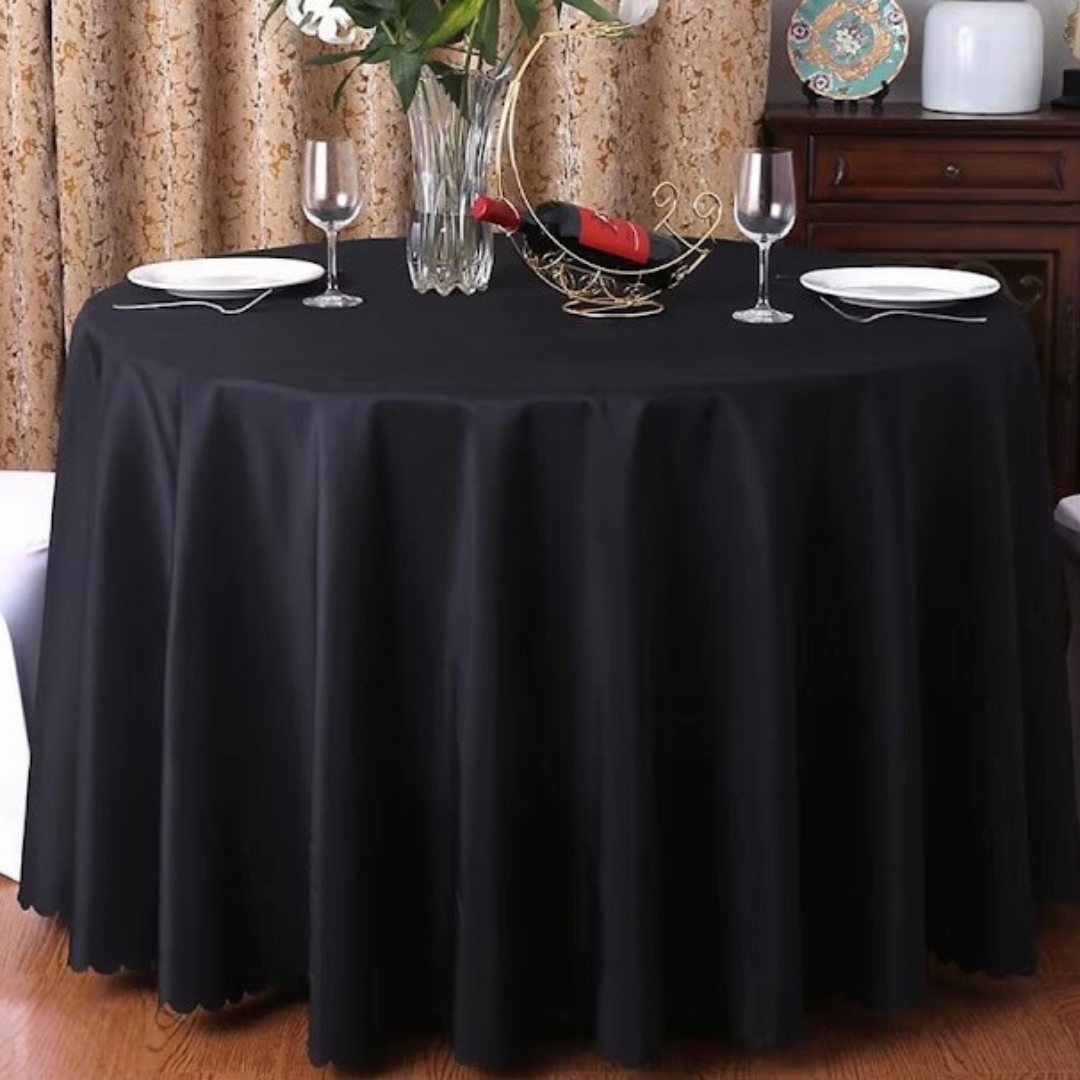 Ümmargune sakilise äärega musta värvi laudlina on valmistatud kvaliteetsest ja vastupidavast polüestrist, mis annab tootele läikiva ja stiilse välimuse. Lisab igale peolauale luksuslikku sära ja loob atmosfääri, kus iga detail on läbimõeldud ja paigas.