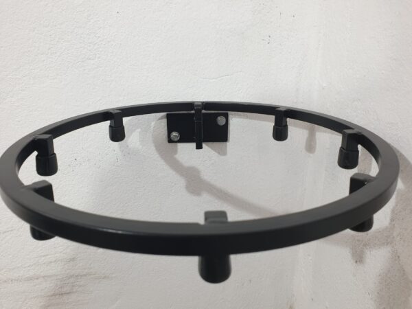 Materjal: teras, kaetud pulbervärviga Sobib prügikottidele alates 35l Komplekt sisaldab seinakinnitust ja kruvisid Sobib kasutamiseks nii sise-kui välitingimistes Läbimõõt: 28cm Kaal: ~1kg