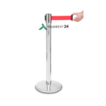Messingist piirdepostil on ümar pea. Saadaval ka käru piirdepostide transpordiks.