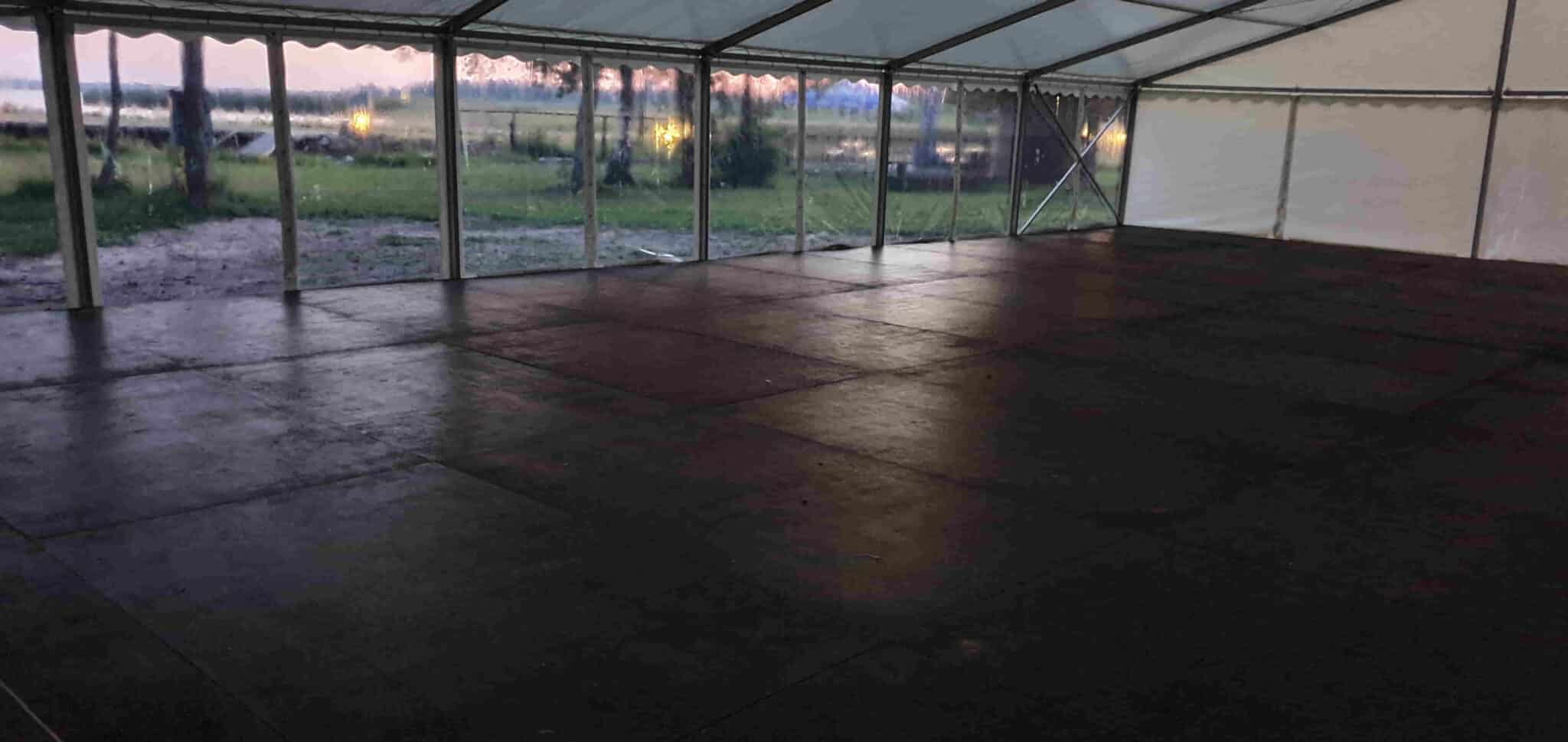 Vineerpõrand on mõeldud kasutamiseks kohtades, kus telgi alla jääv maapind (näiteks muru ja liiv) ei kannata välja toole, laudu ja tantsimist.