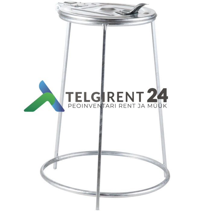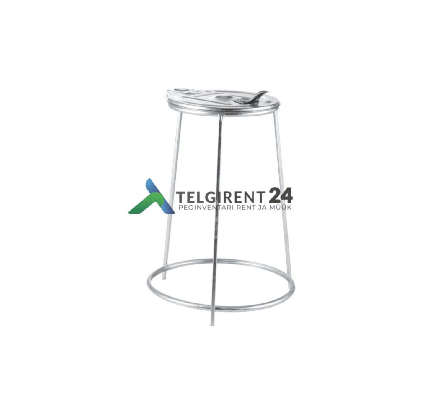 Tugeva ja stabiilse metallist rauakaanega prügikotihoidja on vastupidav ka välitingimustele ja kõrgetele temperatuuridele. Prügikotihoidja metallist tihvtid tagavad stabiilse kinnitamise maapinnale. Tühjendamine on kiire ja mugav – kinnitussüsteem tagab, et kott ei libise jäätmete raskuse alt välja. Läbimõõt: 575mm Kõrgus: 950mm Materjal : tsingitud terasplekk