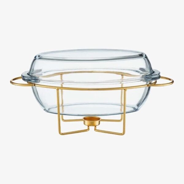 See kuldse servaga klaasist serveerimisvaagen on sobiv valik iga peo või piduliku sündmuse jaoks, kus soovite lisada pisut luksust ja elegantsi. Mõeldud erinevate magustoitude, puuviljade, tortide ning suupistete serveerimiseks, sobib see nii intiimsetele õhtusöökidele kui ka suurematele pidustustele, nagu pulmad, juubelid või firmaüritused. Klaasi läbipaistev pind rõhutab serveeritava toidu ilu ning kuldne ääris lisab vaagenile kõrgtasemel luksusliku välimuse, mis jääb meelde kõigile külalistele.