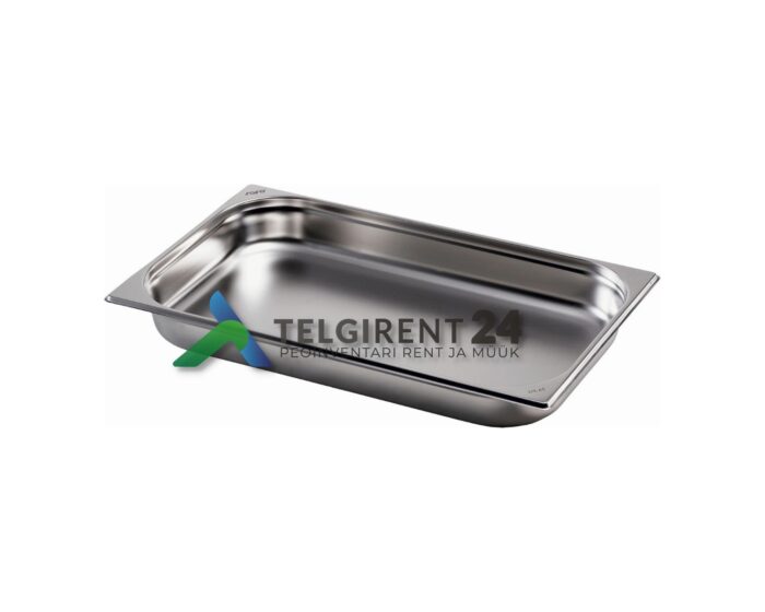 Serveerimisnõu marmiidile, sügavus 40mm Materjal: roostevaba teras Meie valikus on GN nõud marmiidile suurusega 1/1 100mm, 1/2 100mmm, 1/3 100m ja 1/1 40mm NB! Lauanõude laenutus sisaldab nõude pesu!