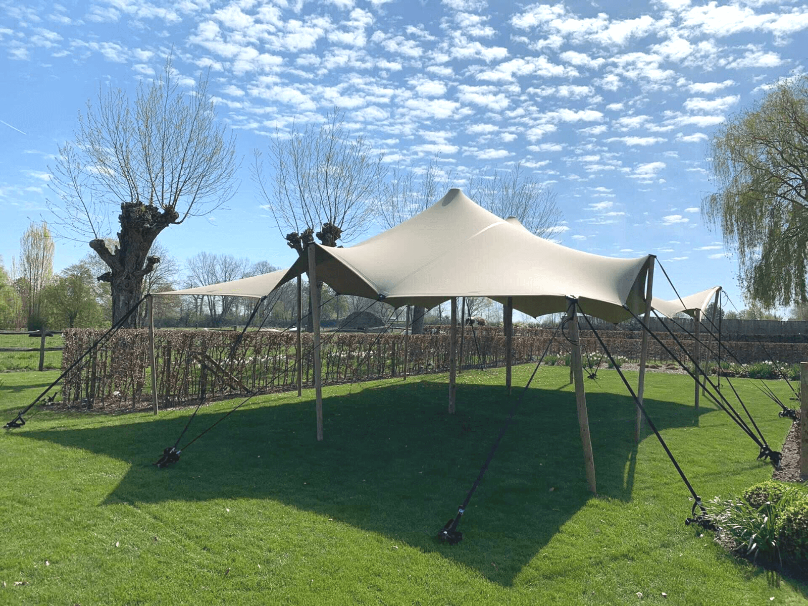 Stretch peotelk sobib peole, suvebaari terrassile, kohvikusse või aeda lisamaks lõunamaist hõngu, meie 6,5×10 m stretch kahekordselt kattega telki nimetatakse ka nomaaditelgiks. Tänu elastsele kangale ja liigutatavatele alumiiniumist või ülitugevast eukalüptipuust postidele (postikomplektid tuleb eraldi osta) saate telgi paigutusega mängida: ilusa ilmaga paigaldate selle nelja avatud küljega, tuulise ilmaga ühe või mitme suletud küljega ja vihma korral saate telgi peaaegu täielikult sulgeda. Mida suurem teie telk on, seda rohkem võimalusi teil on. Kas soovite ürituse ajal luua lisasissepääsu või on külje- või nurgapost ees? Telgi üleval olles saate alati väikeseid muudatusi teha.